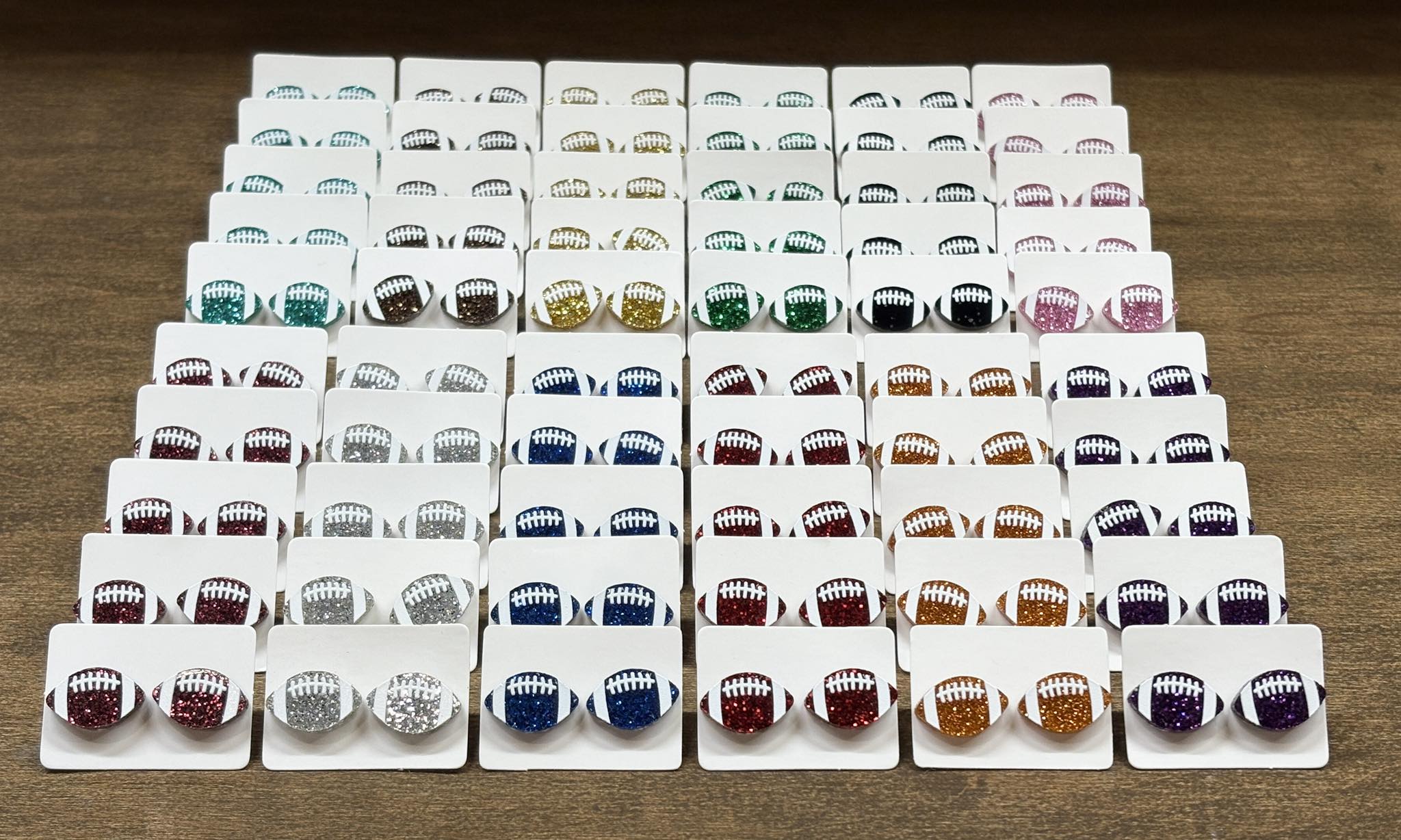 – are laser cut out of 1/8th glitter acrylic with football thread design printed directly on acrylic with high quality ink