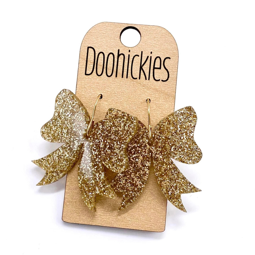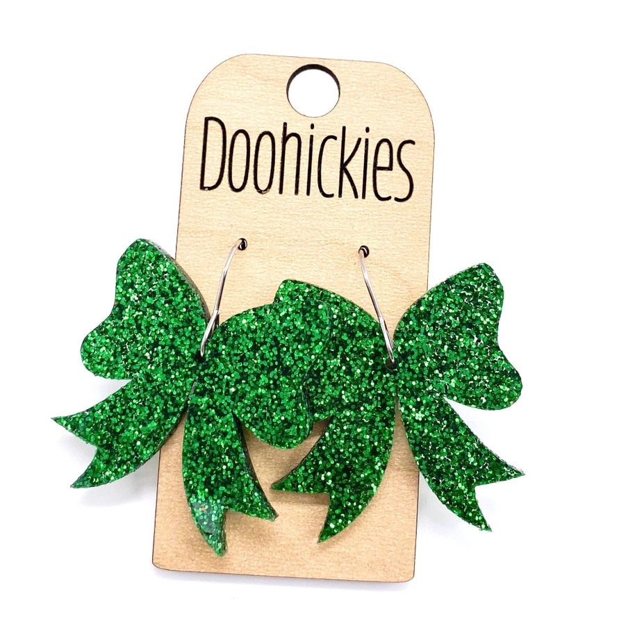 Add some sparkle and school spirit to your look with our Glitter School Spirit Bow Dangles! These custom spirit earrings let you rep your school colors in style. Perfect for game days, pep rallies, and everyday wear. Go team!