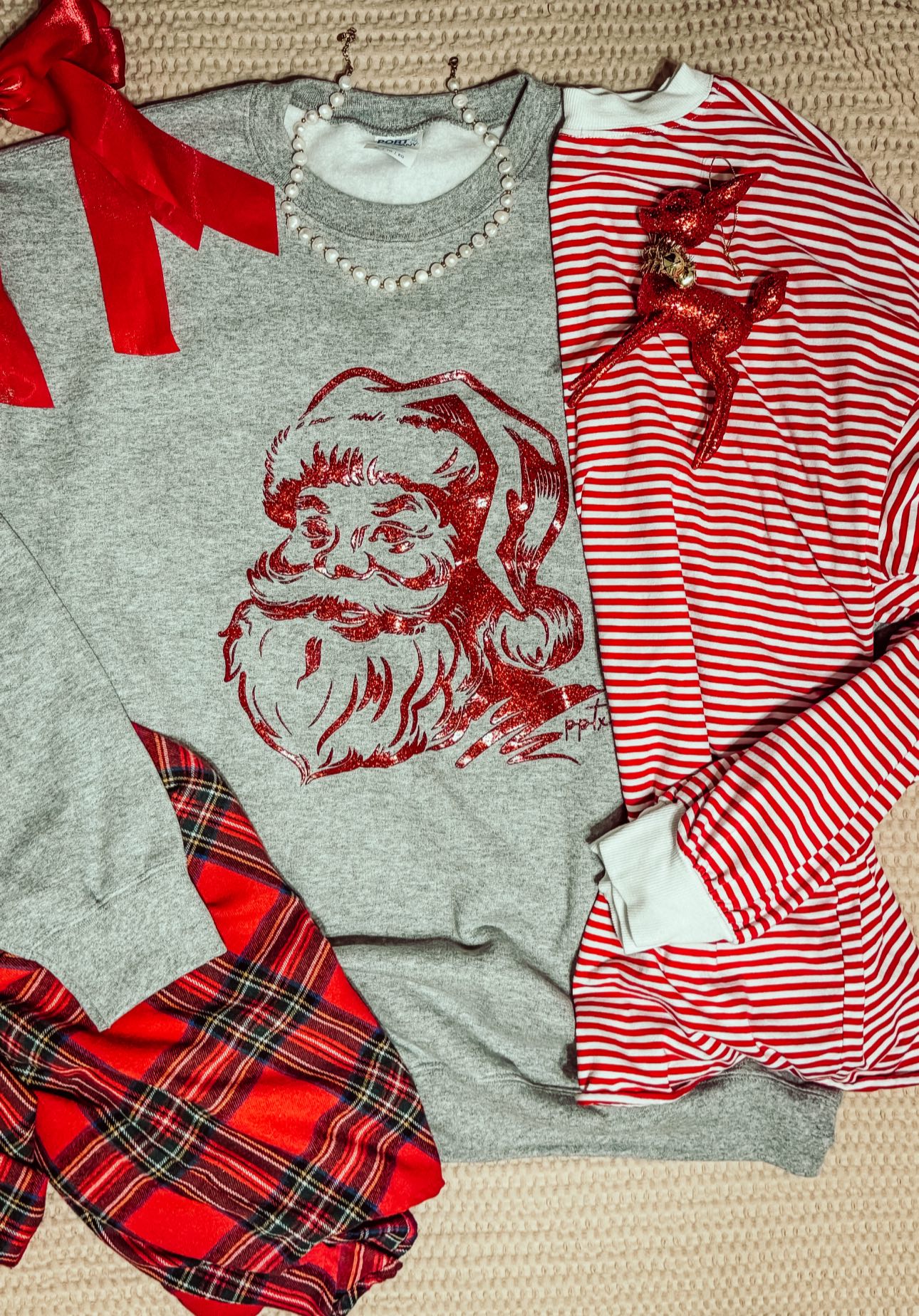 Add some sparkle to your holiday wardrobe with Monochrome Santa! This glittery sweatshirt features a playful take on the classic Santa design. Stay cozy and stylish this season with Monochrome Santa. (Warning: may cause excessive holiday cheer)!