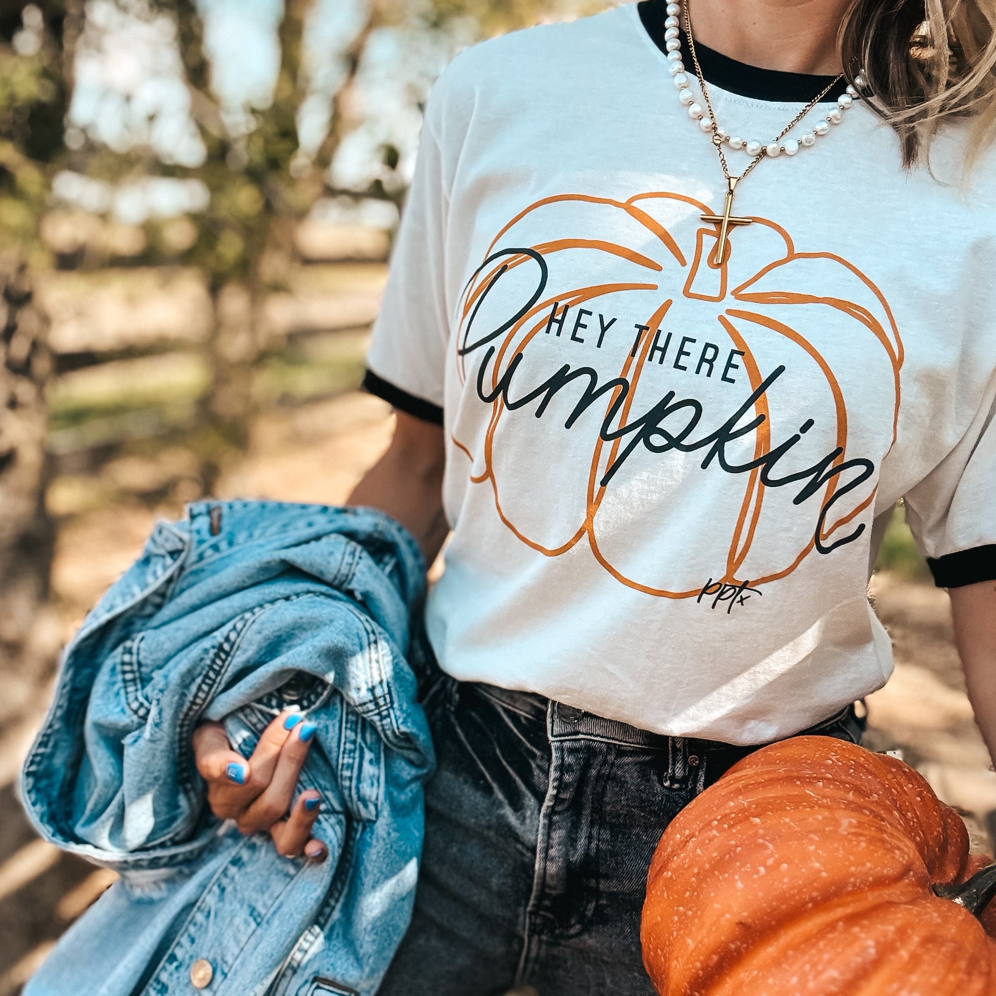 Get ready for the autumn season with our Hello Pumpkin Ringer Tee! Featuring a festive fall flannel and pumpkins, this playful tee is perfect for welcoming in the cooler weather. Bring on the cozy vibes and pumpkin spice with this must-have addition to your wardrobe.