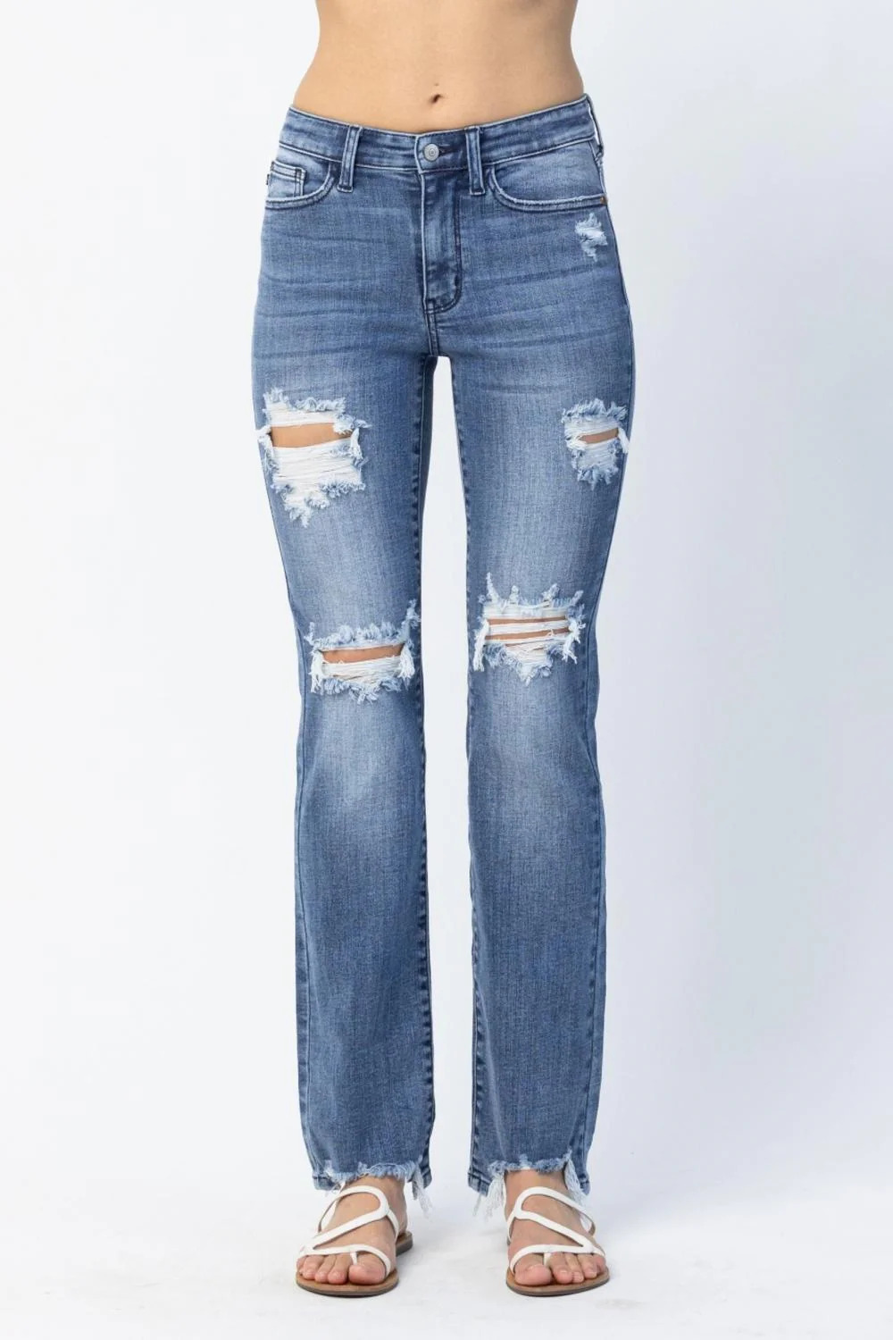 Straight fit: cut to have a straight up-and-down fit through the entire leg