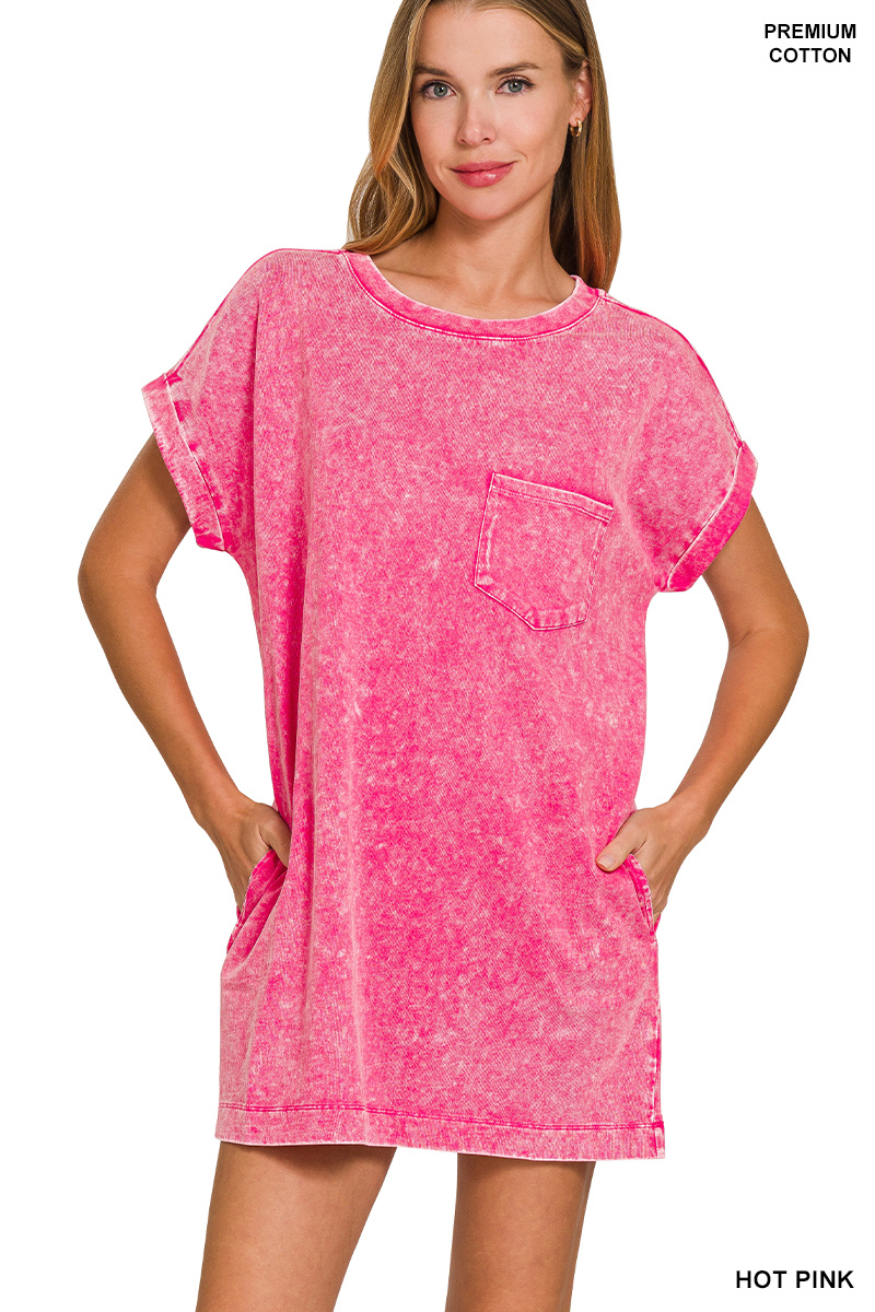 This premium cotton washed T-shirt dress is crafted from high-quality fabric for a soft and comfortable feel. The washed treatment gives the dress a relaxed and laid-back look. Perfect for casual days or dressing up with accessories, this dress offers versatility in styling. The T-shirt silhouette provides a relaxed and easy-to-wear fit. Pair this dress with sneakers for a chic and effortless look.