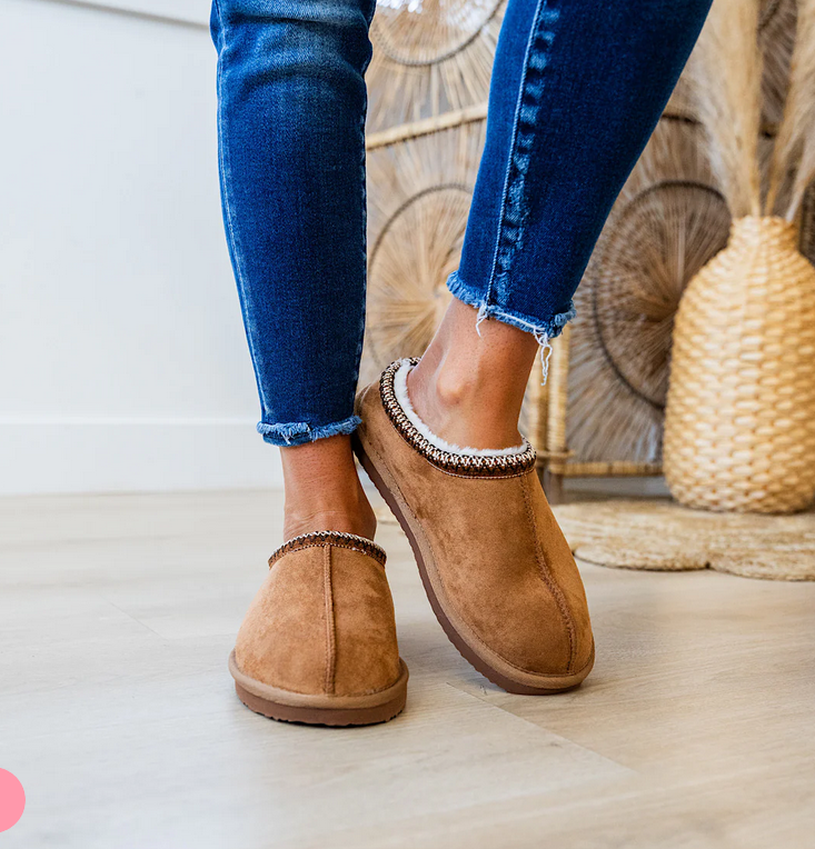 Indulge in luxurious comfort with our Very G Tan Sparks Fuzzy Slippers! Made with a faux fur lining and faux suede outer shell, these slippers will keep your feet warm and cozy. The hard sole offers support while the slip-on design makes them easy to wear. Relax in style with these must-have slippers!